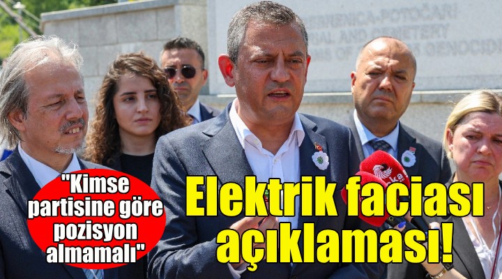 CHP Genel Başkanı Özgür Özel, İzmir’de Özge Ceren Deniz ve İnanç Öktemay'ın elektrik akımına kapılarak can verdiği faciaya ilişkin açıklamada bulundu. Özel açıklamasında, “Kimse sorumluların kimliği, kurumu ya da partisine göre pozisyon almamalıdır” dedi.