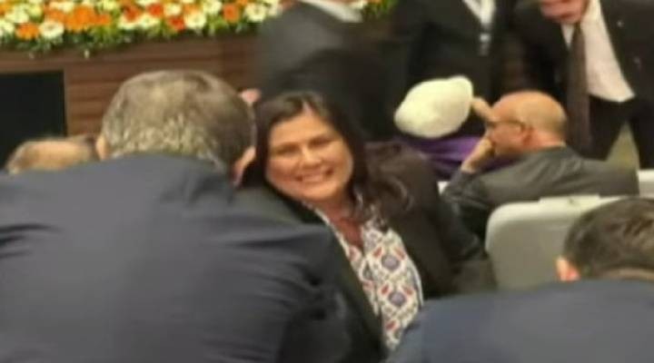 Çerçioğlu tören öncesi AK Parti Genel Merkezi'ne gelerek AKP'li vekillerle selamlaştı.