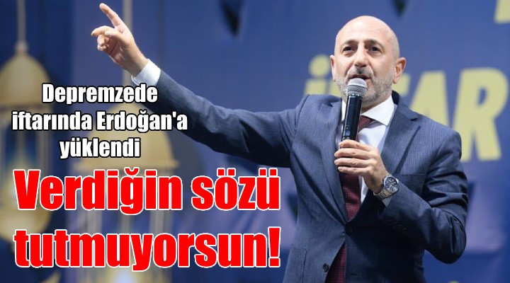"Ben iftar sofralarında, iftar yemeklerinde siyaset yapmıyorum, yapmayı da sevmiyorum. Az önce İl Başkanımız Deniz Yücel dedi ki iftar sofrasında siyaset yapmayız. Doğru söyledi ama bir hususu söylemesem de olmaz. Siz depremzede kardeşlerim, depremden sonra sizlere sözler verildi mi? Verildi. Hükümet buraya geldi. Cumhurbaşkanı buraya geldi. Binali Yıldırım buraya geldiler. AK Parti'nin vekilleri buraya geldiler. Sizlere söz verdiler. Dediler ki düşük faizli kredi vereceğiz. Verdiler mi? Vermediler. Buradan medya aracılığıyla Binali Yıldırım'a, AK Parti milletvekillerine çağrı yapıyorum; depremzedeye verdiğiniz sözü tutun kardeşim. Biz söz vermiştik, tuttuk. Biz dedik ki depremzedelerin yoğunluk artışıyla ilgili sıkıntıyı çözeceğiz. Genel Başkanımız burada meydanda söyledi. Ve çözdük. Şimdi sıra sizde. Çözün kardeşim. Söz verdiysen sözünü tutacaksın. Geri vites takmak bu işte olmaz. Suudi Arabistan'a gidiyorsun, katil dediklerinin yanında orada el pençe divan duruyorsun, üç beş kuruş için. Ama İzmir'de kendi yurttaşına, depremzedeye verdiğin sözü tutmuyorsun. Yazıklar olsun senin gibi hükümete yahu. Mübarek aydayız. Hemen iki cümle daha söyleyeceğim. Sayın Cumhurbaşkanı umreye gitmiş. Dün umre vazifesini görmüş, yapmış. Allah kabul etsin. Ama sayın Cumhurbaşkanına soruyorum; umreye kimin parasıyla gittin. Devletin parasıyla mı gittin kendi paranla mı gittin. Kendi paranla gittiysen... Bakanlar aileler.. Kendi paranla gittiysen eyvallah. Ama devletin parasıyla gittiysen işte o olmaz. Devletin parası bu depremzede için var. Depremzedenin sıkıntısı çözülsünn diye var. Sen devletin parasıyla umreye gidersen o kabul olmaz. Helallik isteyeceksin. Bir kişi bile vermezse o kabul olmaz. Bunu da buradan bir kez daha hatırlatmak isterim."