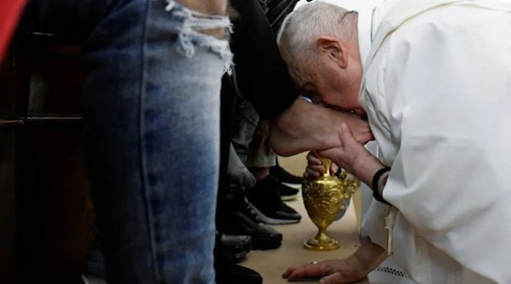 Geçen hafta üst solunum yollarındaki enfeksiyon nedeniyle hastanede tedavi gören 86 yaşındaki Papa, geleneksel dua töreninde ıslahevinde kalan gençlerin ayaklarını yıkadı. Hz. İsa'nın havarilerine olan alçak gönüllülüğünü yansıttığına inanılan geleneksel törende, Papa 12 genç mahkumun ayaklarını önce yıkadı, sonra da öptü.
