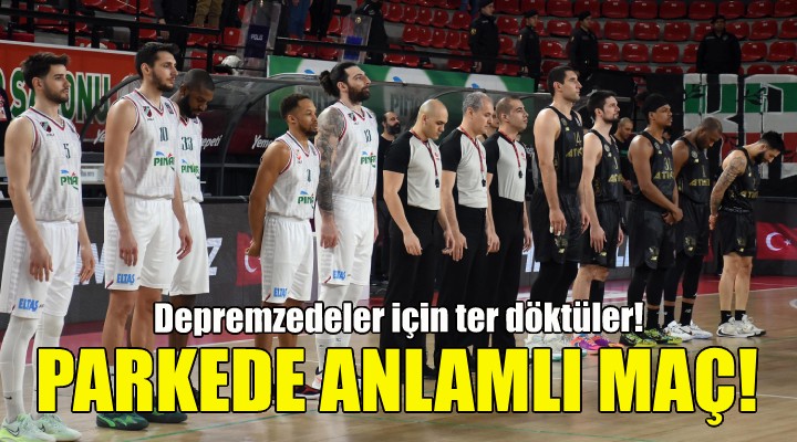 Mustafa Kemal Atatürk Karşıyaka Spor Salonu’nda biletleri 100 TL’den satılıp tüm geliri deprem bölgesine aktarılacak hazırlık maçını 500 civarında taraftar izledi. İki takımın oyuncuları ve tüm salon, maç öncesi deprem felaketinde hayatını kaybeden vatandaşlarımız için 1 dakikalık saygı duruşunda bulundu. Konuk Konyaspor, parkeye siyah formayla çıkarken, salonda siyah reklam panolarında, “Hep birlikte yanınızdayız” ve “TekTribünTekYürek” mesajları yayınlandı.