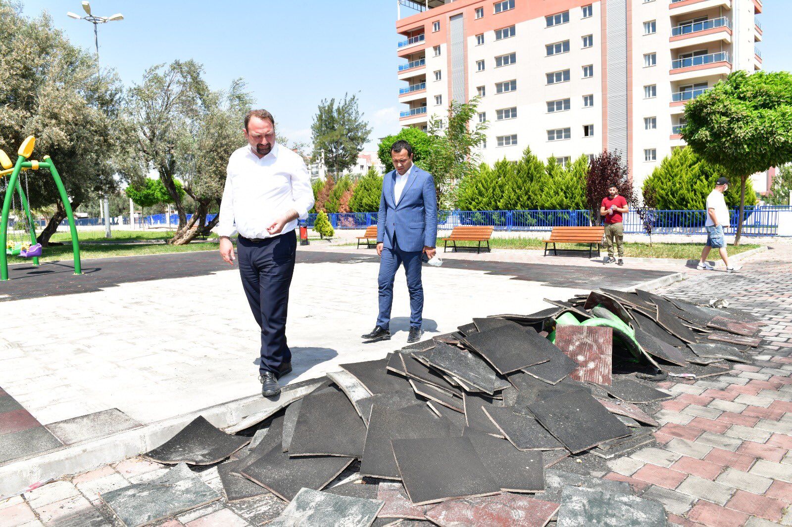 Çiğli'deki parkın zeminine döşenen ve çocukların düşmesi durumunda yaralanmalarını engelleyen kaplama kimliği belirsiz kişiler tarafından söküldü.
