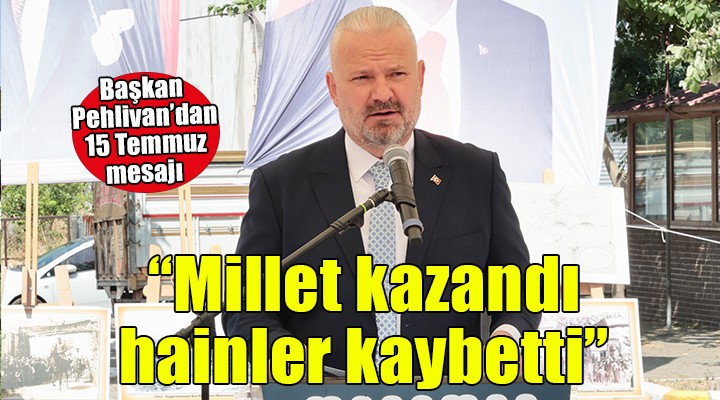 Cumhurbaşkanı Recep Tayyip Erdoğan'ın 15 Temmuz günü gösterdiği liderliğin tarihe geçtiğinin altını çizen Başkan Pehlivan, "O karanlık gecede milletimizin önüne düşen, korkmadan, çekinmeden, "Ben buradayım!" diyen bir lider vardı... Cumhurbaşkanımız Sayın Recep Tayyip Erdoğan! O gece gösterdiği dirayet, cesaret ve feraset; sadece bir milleti ayağa kaldırmadı, bir destanı da tarihe nakşetti. Millet, liderine inandı. Lider, milletine güvendi. Ve işte o güvenle, tarih yeniden yazıldı Cumhurbaşkanımız Sayın Recep Tayyip Erdoğan’ın çağrısıyla, milyonlar tek yürek oldu! Camilerden yükselen selalar, evlerden taşan dualar, meydanlarda getirilen tekbirlerle bu millet bir kez daha şahlandı. Ve sonunda: Millet kazandı, hainler kaybetti!" ifadelerini kullandı.