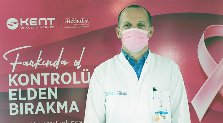 Ekim ayı tüm dünyada “Meme Kanseri Farkındalık Ayı” olarak kabul edilip çeşitli kampanyalar gerçekleştirilirken, Kent Onkoloji Merkezi’nde “Pembe maske tak, meme kanserine dikkat çek” etkinliği düzenlendi. Bir ay boyunca tüm çalışanların pembe maske takacağı etkinliğe Kent Sağlık Grubu’nun bünyesinde yer alan Kent Hastanesi ile Alsancak ve Bayraklı Tıp Merkezleri de dahil olurken, pembe maskeler sağlık kuruluşunda hoş görüntüler yarattı. Çeşitli rahpatsızlıkları nedeniyle hastaneye, tıp merkezlerine gelen kadın erkek hastalar pembe maske takarak etkinliğe destek verirken, medikal onkoloji uzmanı Doç. Dr. Görümlü önemli uyarılarda bulundu. Houston Methodist Hospital işbirliği ile hizmete açılan Kent Onkoloji Merkezi’nde tanı ve tedavide yol haritalarının tümör konseylerince belirlendiğini, kişiye özel tedavilerin yanında her türlü destek uygulamalarının sunulduğunu belirten Doç. Dr. Görümlü, şöyle konuştu;