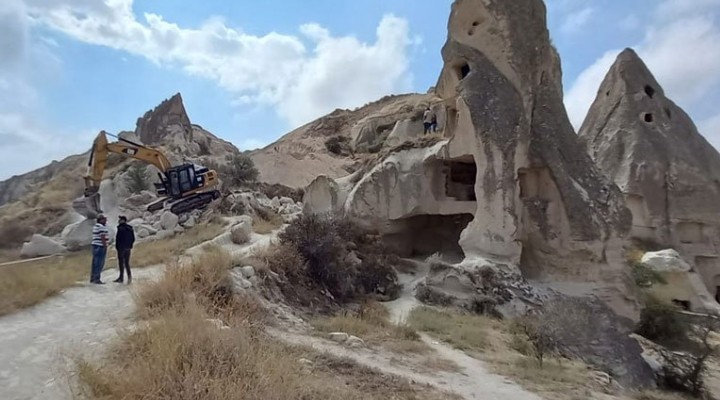 UNESCO Dünya Kültür Mirası listesinde bulunan Kapadokya'da, 1. derece arkeolojik ve doğal sit alanında yapımı devam eden yol tepkilere rağmen durmuyor.