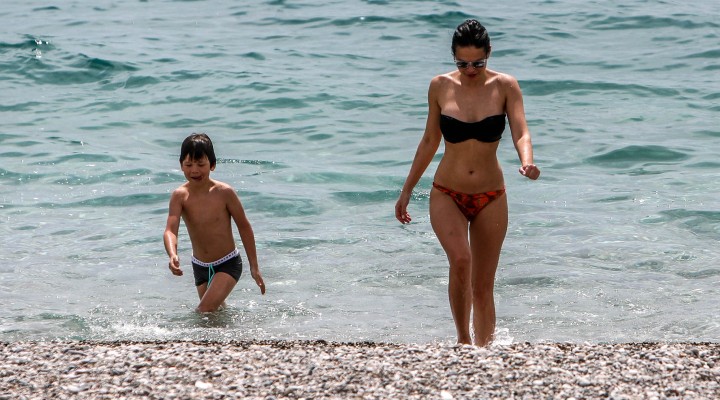 Kimi sahilde güneşlenirken kimi ise denize girerek, Akdeniz'in keyfini sürdü.