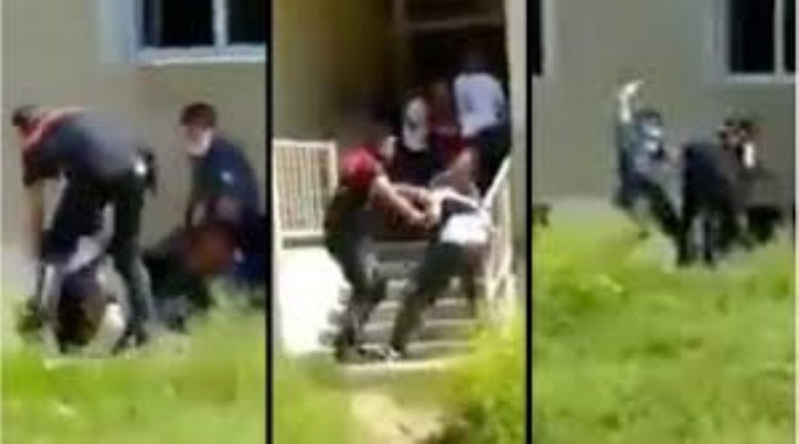 Görüntülerde iki polisin baba ve oğlunu darp ettiği, bir başka polisin de havaya ateş açtığı görülüyor. O anlar amatör kameralara yansırken, çevredeki insanların ise çığlıkları duyuluyor. Polisin sıktığı biber gazından çocuklar etkilenirken, bölgede bulunan yurttaşlar da duruma tepkili.