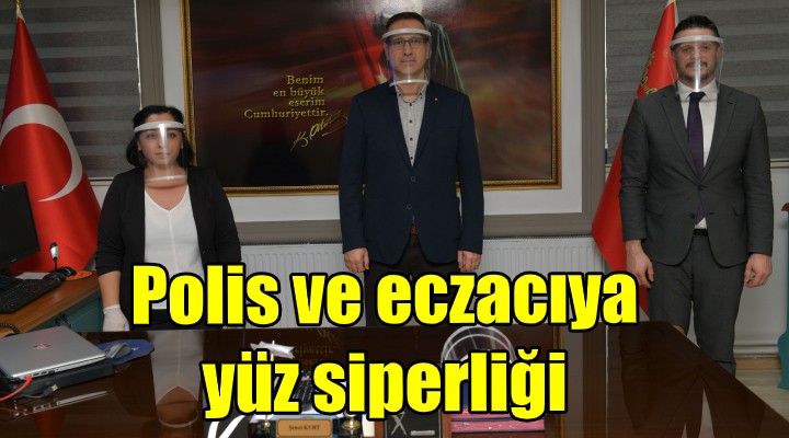 Koronavirüse karşı risk altında olan bir diğer meslek grubu eczane çalışanlarına da yüz siperliği verildi. İlaç almak isteyen hasta ve yakınları ile yüz yüze temas halinde olan ilçedeki eczanelerde çalışan eczacı ve kalfalarına yüz siperlikleri teslim edildi.