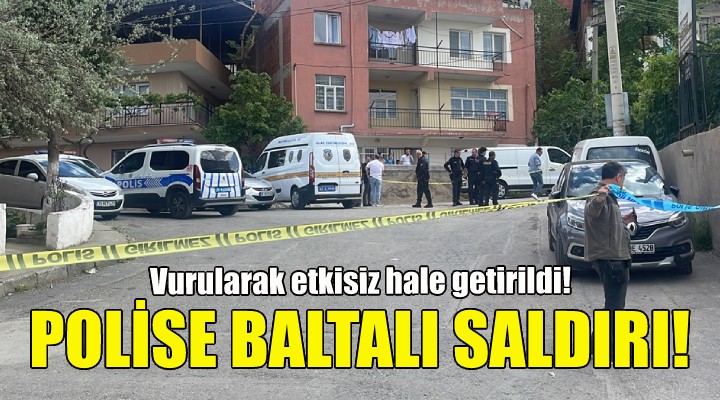Ekiplerin havaya uyarı ateşi açmasına rağmen şüpheli, elindeki baltayı bırakmayarak polis aracına vurdu. Bunun üzerine ekipler şüpheliyi tabancayla yaralayarak etkisiz hale getirdi. Sağlık ekiplerine de saldırmaya çalışan şüpheli, polis yardımıyla konulduğu ambulansla Bozyaka Eğitim ve Araştırma Hastanesine kaldırıldı.