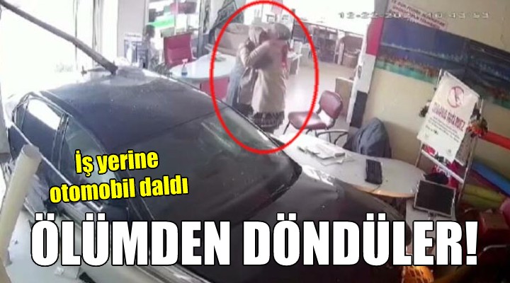 Kaza, iş yerinin güvenlik kameraları tarafından anbean kaydedildi. Görüntülerde aracın kontrolünü yitirip iş yerine daldığı görülürken, hem iş yerinde bulunan 2 çalışanın hem de kaldırım da yürüyen kadın ile çocuğunun ölümden döndüğü görülüyor.