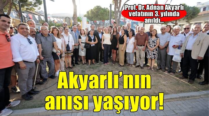 Törenin hazırlanmasında emeği geçen tüm kurumlara teşekkür eden Prof. Dr. Akyarlı’nın kızı ve Konak Belediye Meclis Üyesi Ayşın Akyarlı Savatlı, “Sonsuzluğa yürüyüşünün üçüncü yılında çok sevgili babam Prof. Dr. Adnan Akyarlı’yı sadece sevgi, saygı ve özlemle değil, bıraktığı değerlerle ve yolumuza ışık olan bilgeliğiyle anıyoruz. Babam bir bilim insanı olmanın ötesinde yaşamını, ailesine, içinde yaşadığı topluma ve tüm insanlığa adayarak eşsiz katkılar vermiş, bilimle, akılla şekillendirip erdemle taçlandırdığı kişiliğiyle rehber olmuş kamil bir insandı. Merkezine insan sevgisini koyduğu yaşamının ardında bıraktığı tüm değerler yolumuzu sürekli olarak aydınlatmayı sürdürecek. Ben kızı olarak babamın ışığını ve adını gururla taşımak için durmaksızın çalışmaya devam edeceğim. Canım babamı her gün artan bir özlem, sevgi, saygı hayranlık, gurur ve minnetle anıyorum” diye konuştu.