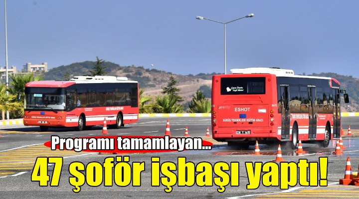 İzmir Büyükşehir Belediyesi ESHOT Genel Müdürlüğü’nün, İZELMAN Genel Müdürlüğü ve Büyükşehir Sosyal Projeler Dairesi Başkanlığı ile birlikte yürüttüğü Sürücü Yetiştirme Programı’nı başarıyla tamamlayan 47 şoför işbaşı yaptı.
