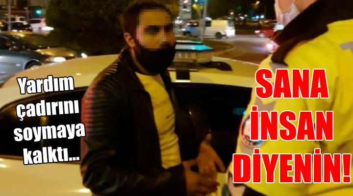 İzmir'in Seferihisar ilçesi açıklarında geçen cuma günü meydana gelen 6.6 büyüklüğündeki depremin ardından Rızabey Apartmanı enkazı çevresinde kurulan ve arama kurtarma ekiplerinin çeşitli ihtiyaçlarının karşılandığı yardım çadırlarından değerli eşya çaldığı iddia edilen bir kişi, vatandaşlar tarafından fark edilerek, yakalandı. Yakınlardaki trafik polislerine teslim edilen şüpheli, daha sonra asayiş ekiplerince emniyete götürüldü. Vatandaşlar, hırsızlık şüphelisinin polisleri görünce topallamaya başladığını söyledi.