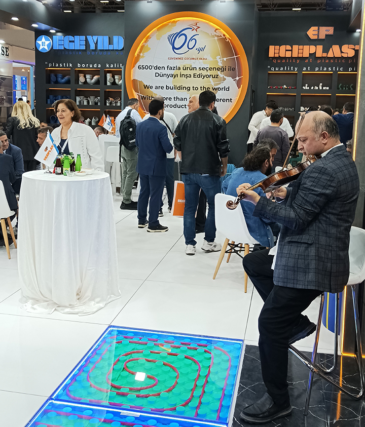 Plastik boru sektöründe, kaliteli ürünleriyle, sadece yurtiçinde değil, yurtdışında da tercih edilen marka olan, Ege Yıldız ve Egeplast bu yıl fuara “6 bin 500’den fazla ürün seçeneğimizle dünyayı inşa ediyoruz” sloganıyla katılırken, özellikle yeni ürünü yanmaz sessiz boru Ege Sleep Plus ilgi odağı oldu.
