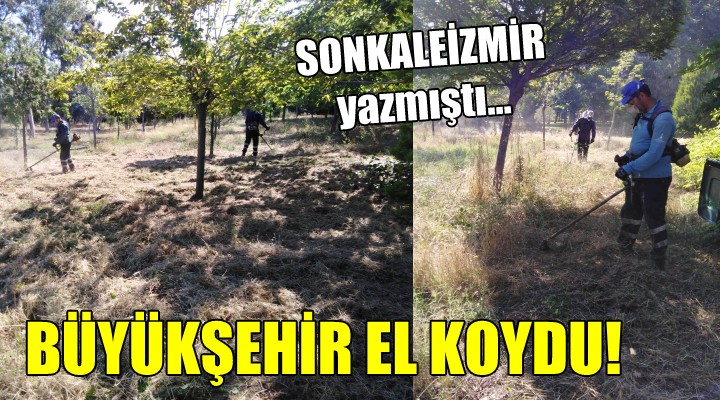 SONKALEİZMİR-İnciraltı Kent Ormanı'nda yürekleri ağza getiren manzaraya İzmir Büyükşehir Belediyesi ekipleri müdahale etti. Boyları 1.5 metreye ulaşan ve yangına davetiye çıkaran kuru otların durumunu 'O cennette büylük tehlike... BİR KIVILCIM YETER' başlığıyla gündeme getiren SONKALEİZMİR'in haberi ses getirdi. Park ve Bahçeler Dairesi Başkanlığı ekipleri motorlu tırpanlarla temizlik çalışması başlatırken, yazılı bir açıklama yapıldı.