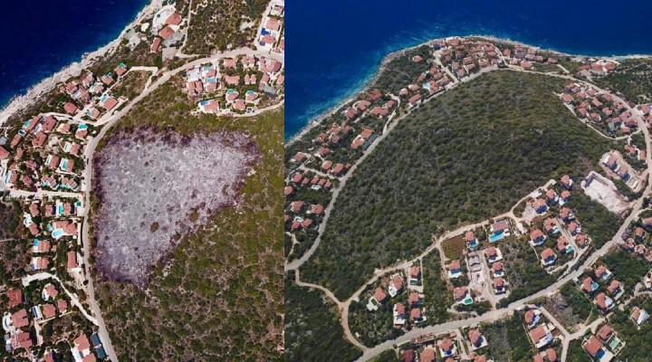 Antalya’nın Kaş ilçesinde villaların olduğu Yarım Ada’da, yer alan ormanlık alanda yangın çıkmıştı. Ormanlık alanın gün ağarınca ortaya çıkan manzarası, yangınla ilgili şüpheleri artırdı.
