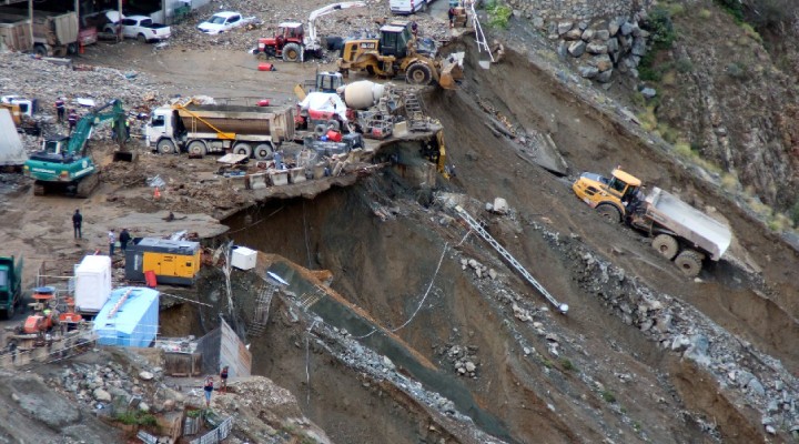 Şantiyede onlarca araç ile iş makineleri balçığa gömüldü. Hasar, gün ağarınca ortaya çıktı.
