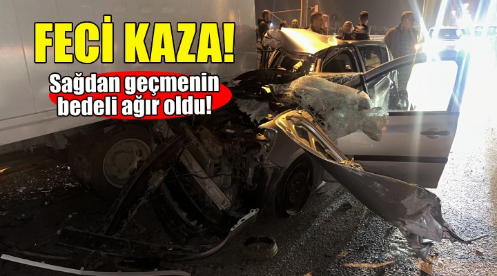 Kaza, saat 22.30 sıralarında Bayraklı ilçesi Anadolu Caddesi'nde meydana geldi. İddiaya göre, Konak istikametine doğru seyir halinde olan İ.A. yönetimindeki 34 NA 7134 plakalı otomobil, orta şeritte seyir halinde olan belediye otobüsünün sağından geçti. Otomobil, belediye otobüsünün sağ tarafına sürtüp, ardından sağ şeritte arıza nedeniyle duran Eser E. yönetimindeki 07 SAB 50 plakalı kamyonete arkadan çarptı.