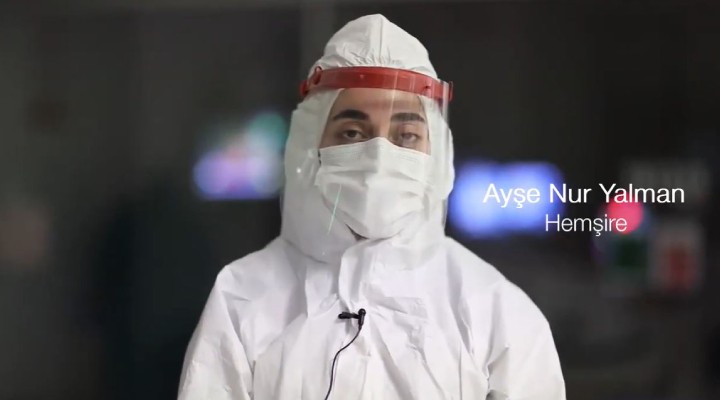 Hemşire Emine Severer: “Bildiğiniz gibi bir yıldan fazladır koronavirüsle mücadele ediyoruz. Sizler de corona virüsüyle mücadelemize, tedbirlere uyarak destek verebilirsiniz. İnşallah bundan sonraki bayramları hep birlikte kucaklaşarak kutlayacağız. İyi bayramlar.”