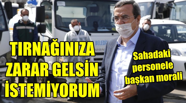 Temizlik personeli ve sahada çalışan ekiplere büyük görev düştüğünü söyleyen Abdül Batur, personele yaptıkları fedakarlık için teşekkür etti. Zor günleri birlikte aşacaklarını vurgulayan Batur, "Sizlere büyük görev düşüyor. Sizler çalışıyorsunuz, böylece İzmir halkı rahat ediyor. Özellikle temizlik işleri ve park bahçelerdeki arkadaşlarımızın çalışması önemli. Kenti temiz tutacağız, kenti temiz tutarak bu hastalıkla başa çıkacağız. Şu ana kadar fedakarca çalıştınız, fedakarca hizmet ediyorsunuz. Hepinize ayrı ayrı teşekkür ediyorum. Sadece kendi adıma değil Konak’ta yaşayan bütün vatandaşlar adına teşekkür ediyorum. ‘Birlikte Konak’ demiştik ve de bu başımıza çöken bu felaketi de hep birlikte aşacağız. Sizlere güveniyorum. Biz de belediyede görevimizin başındayız. Bize her zaman ulaşabilirsiniz.”