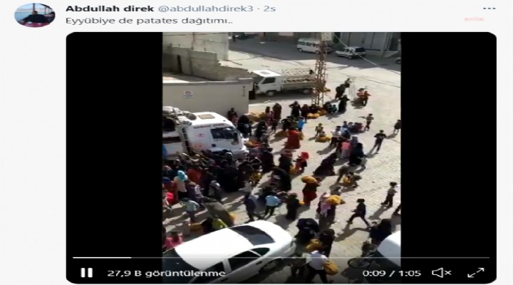 Sözcü gazetesinde yer alan habere göre; Şanlıurfa’nın Eyyubiye ilçesinde sosyal medyaya yansıyan görüntülerde, sokak ortasında bir kamyondan yapılan patates dağıtımına halkın yoğun ilgi gösterdiği ve izdiham yaşandığı görüldü.