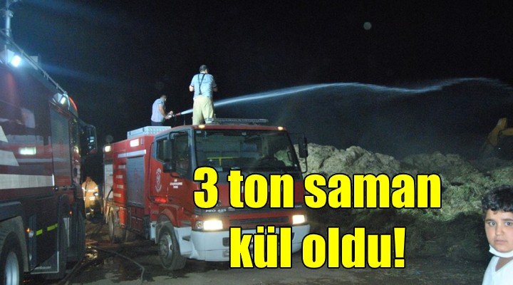 İzmir'in Ödemiş ilçesinde bir çiftlikte bulunan saman deposunda çıkan yangında 3 ton saman yandı.