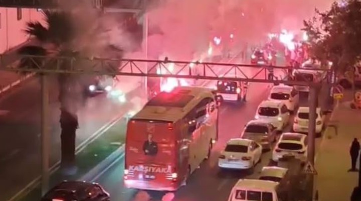 SONKALEİZMİR-Andan Menderes Havalimanı'ndan üstü açık otobüsle Karşıyaka'ya kadar gelen yeşil-kırmızılı oyuncular ve teknik heyeti Karşıyakalı taraftarlar balkonlardan selamladı. Rusya'daki organizasyondan takımla birlikte dönen bir grup taraftar da takım otobüsüne konvoyle eşlik etti. Yeşal-kırmızılı basketbolseverler, Karşıyaka İskele önünde de meşaleler yakarak takıma moral verdi.