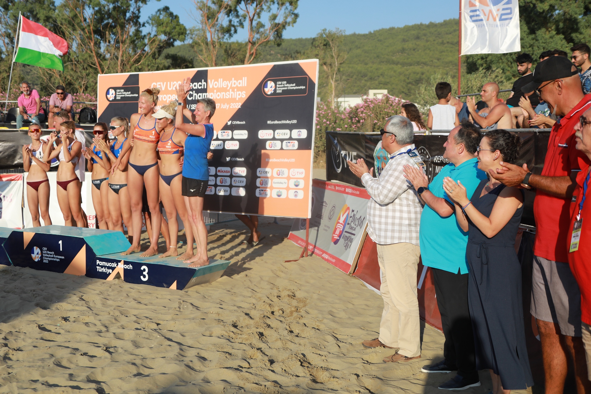 Bu yıl bir kez daha Efes Selçuk Pamucak Sahili’nde düzenlenen organizasyonun ödül töreninde Avrupa’nın en iyi voleybolculara ödülleri, TVF Başkanvekili Alper Sedat Aslandaş, Efes Selçuk Belediye Başkanı Filiz Ceritoğlu Sengel, İlçe Kaymakamı Ekrem İnci, SWS Sports Organizasyon Sorumlusu Gürsel Yeşiltaş, Gençlik ve Spor İl Müdürlüğü adına Spor Şube Vekili Enver Yılmaz, TVF İzmir İl Temsilcisi Hakan Gürsu ve protokol üyeleri tarafından verildi.