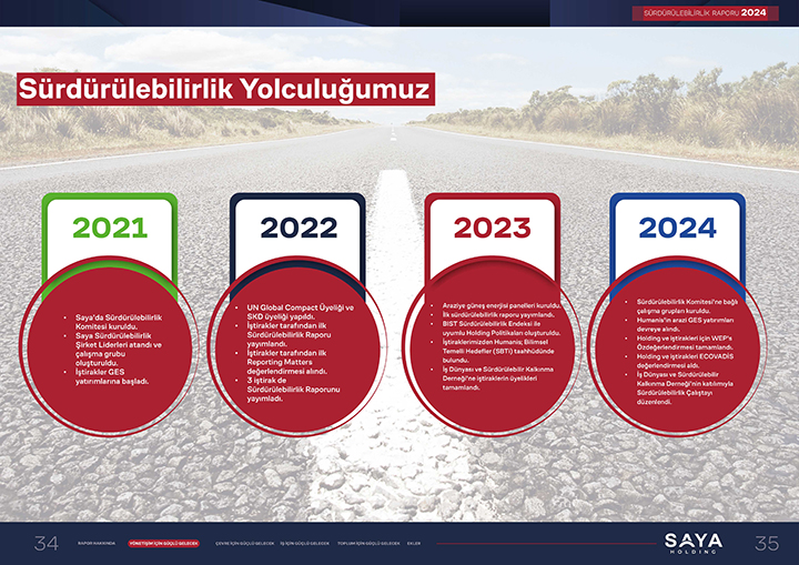 Saya Holding, 2030 stratejisinde enerji verimliliği, yenilenebilir enerji yatırımları, su yönetimi ve döngüsel ekonomiyi temel alan ortak bir sürdürülebilirlik modeli oluşturmayı hedefliyor. Holding, tüm iştiraklerde çevresel ve toplumsal etkiyi uluslararası standartlarla ölçen bir yönetişim yapısına geçeceğini raporda duyurdu.