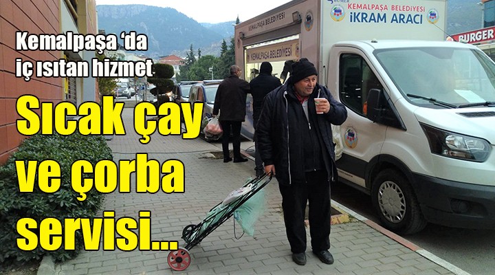 Sosyal belediyecilik anlayışıyla pek çok proje ve çalışmaya imza atan Kemalpaşa Belediyesi bu kapsamda vatandaşlara ücretsiz çorba ve çay ikramında bulunuyor. Belediye bünyesinde özenle pişirilen sıcak çorba ve çaylar sabahları vatandaşların en çok kullandığı noktalarda dağıtılıyor.