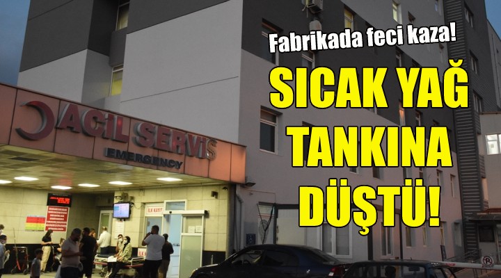 Kemalpaşa Organize Sanayi Bölgesi'nde bulunan bir metal kaplama fabrikasının üretim kısmında çalışan E.Ş, dengesini kaybederek yarım metreye yakın sıcak yağ dolu tanka düştü. İş arkadaşlarının yardımıyla tanktan çıkarılan E.Ş, olay yerine çağırılan 112 Acil Servis ekiplerince Kemalpaşa Devlet Hastanesi'ne kaldırıldı.