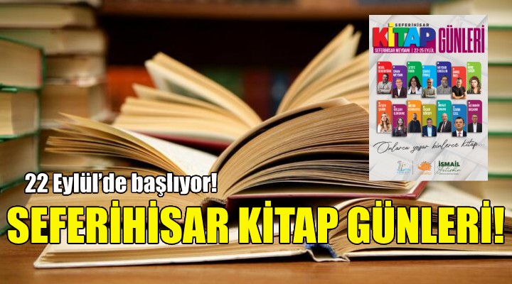 “Okumak Özgürleştirir” sloganıyla yola çıkan Seferihisar Kitap Günleri etkinliğinde Nebil Özgentürk, Latife Tekin, Sinan Meydan, Haydar Ergülen, Şükrü Erbaş, Barış İnce, Mine Söğüt, Ayşen Şahin, Gülşah Elikbank, Yaşar Gürsoy gibi çok sayıda yazar yer alacak.