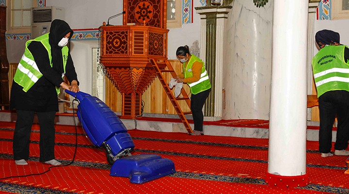 Seferihisar merkez ve köylerdeki camilerde başlatılan çalışmada halılar hijyenik koşullarda yıkanıp kurutulurken camilerin genel temizliği de gerçekleştiriliyor.