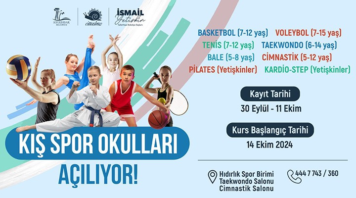 Kış boyunca basketbol, voleybol, tenis, taekwondo, bale, cimnasik, pilates, kardio-step dersleri verilecek. 5-15 yaş arasındaki öğrencilere uzman eğitmenler eşliğinde gerçekleştirilecek kurslar için kayıtlar 30 Eylül’de Hıdırlık Spor Birimi, Taekwondo Salonu ve Cimnastik Salonu’nda başlayacak. Aynı zamanda yetişkin öğrenciler için de kardio-step ve pilates dersleri verecek olan spor okulunun kayıtları, 11 Ekim tarihine kadar sürecek.