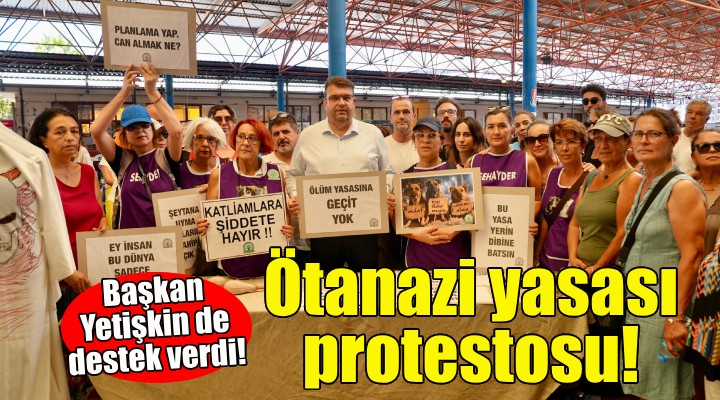 Ölüm yasasına geçit yok, bu yasa yerin dibine batsın, katliamlara şiddete hayır pankartlarıyla Seferihisar Salı Pazarı’nda toplanan SEHAYDER, Afalina, Elim Patimde, Pati Çetesi, Akarcalılar Derneği, Çağdaş Yaşamı Destekleme Derneği, Atatürkçü Düşünce Derneği ve hayvan hakları savunucuları, kamuoyunda katliam yasası olarak bilinen sokak hayvanlarının uyutulmasını öngören yasa teklifini protesto etti.