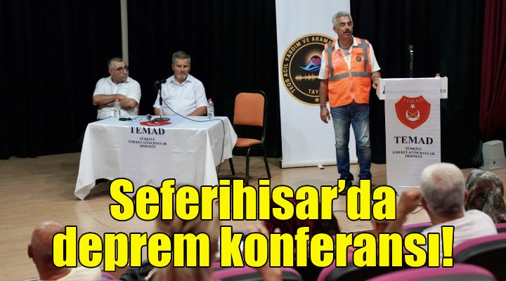 Konferansta Seferihisar Belediyesi Afet İşleri Müdürü Hakan Alten, “Afet Bilinci ve Farkındalık”, TEMAD Seferihisar Şube Başkanı Sebahattin Yılmaz “Kaçınılmaz Gerçeğimiz Deprem”, TAYKE Yönetim Kurulu Üyesi Vahdi Sarıkaya da “Afetlerde Sivil Toplum Kuruluşlarının Gücü” başlıklı konuşma yaptı.