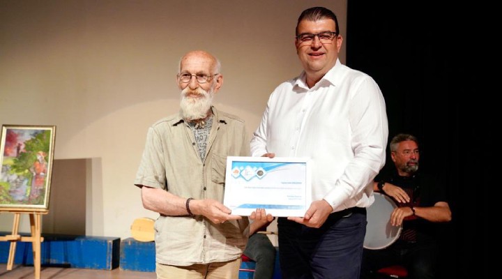 Başkan Yetişkin yaptığı konuşmada, “Cahit Koççoban, yüzyıllar sonra bile Anadolu’nun değerli sanatçıları arasında anılacak bir isim ve Seferihisar’da yaşadığı için bizler çok şanslıyız. Kendisine vefamızı gösterme fırsatını bize veren Can ve İlknur Ayaz’a, teşekkürlerimi sunarım” dedi. Yetişkin konuşmasının ardından, Cahit Koççoban’la, belgeselin yönetmenleri Can ve İlknur Ayaz’a plaket takdim etti.
