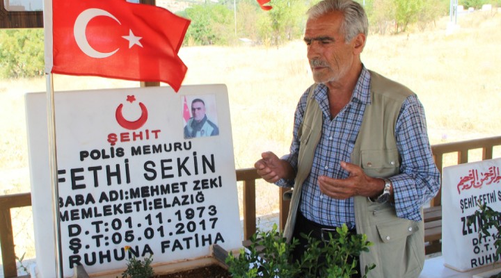 İzmir Adliyesi'nde PKK'lı teröristlerin saldırısını şehit olarak önleyen polis memuru Fethi Sekin'in acılı babası Mehmet Zeki Sekin, bayram öncesi şehit oğlunun Elazığ'ın Baskil ilçesine bağlı Doğancık köyündeki kabrini ziyaret etti. Mehmet Zeki Sekin, şehit oğlunun kabrine ziyaretlerin yoğun olduğunu anlattı. Gelen ziyaretçilerin Fethi Sekin'in mezarının başına geçen yıl ocak ayından beri bırakılan 8 defteri doldurduğunu belirten Mehmet Zeki Sekin, "Fethi'siz geçen 6’ncı bayramımız. Her bayram oğlumu ziyarete gelirim. Sadece ben değil, tüm Türkiye’den ve yabancı ülkelerden ziyaretçiler gelir. Şehidimin misafirleri hiç eksik olmuyor. 5 Ocak 2018 tarihinde şehidimin kabrine şeref defteri bıraktık. Şu an 8 defter bitti. 9’ncu deftere geçtik. Gelen misafirler duygularını yazıyorlar. Fethimin kahramanlığından bahsediyorlar. Şehitler ölmez, vatan bölünmez. Ben şehidimle gurur duyuyorum. Bu gurur, tüm Türkiye’nin gururudur. Zaten güzel ülkemde Fethi Sekinler bitmez. Bir Fethi Sekin ölür, bir Fethi Sekin doğar" dedi.