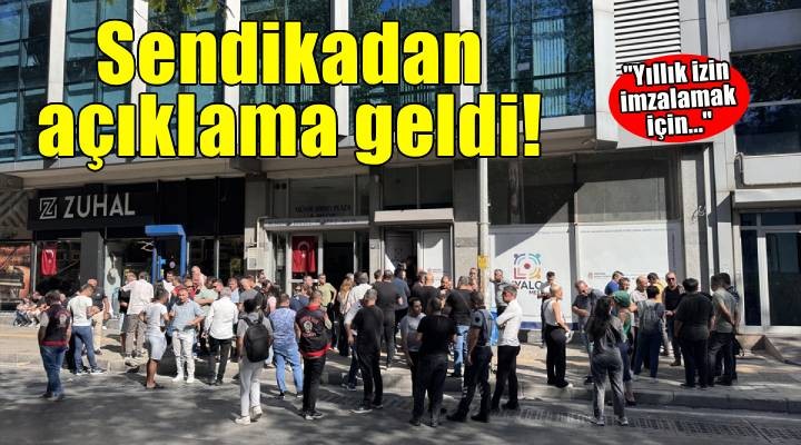 İzne çıkarılan güvenlik görevlileri, İzmir Büyükşehir Belediyesi iştiraki İZENERJİ AŞ Genel Müdürlüğü binası önünde bir araya gelerek, izin işlemlerini gerçekleştirdi.