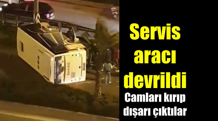 Feci kaza, bugün saat 21.15 sıralarında, Bornova'dan geçen Ankara Caddesi'nin Ege Üniversitesi Kavşağı yakınlarında meydana geldi. Şehir içinden yolcuları alıp hızla otogara giden, bir otobüs firmasına ait servis aracı, henüz belirlenemeyen nedenle kontrolden çıktı. Sürücüsünün direksiyon hakimiyetini yitirdiği yolcu dolu servis, devrilip caddenin ortasında yan yattı. Büyük korku ve panik yaşayan yolcular, aracın camlarını kırıp kendilerini dışarı attı. Yaralılar, yakındaki hastanelere kaldırıldı. Kazayla ilgili soruşturma başlatıldı.