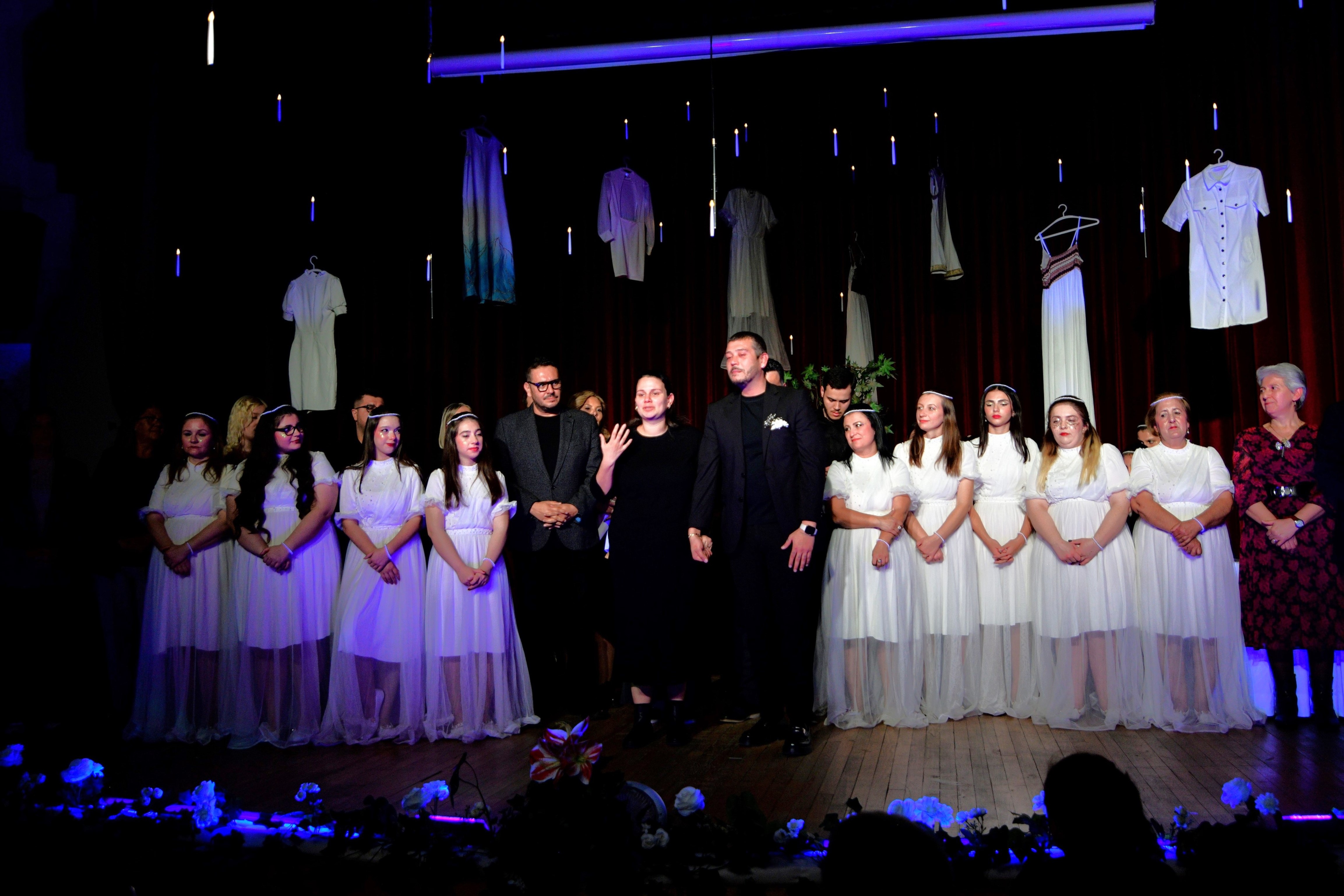Kadınların beyaz elbiselerle sahneye yerleştiği, arka planda ise göğe doğru uzanan görkemli bir ağacın konumlandığı sahne tasarımı; acıyı, yas tutmayı ve dayanışmayı simgeleyen güçlü bir atmosfer oluşturdu.