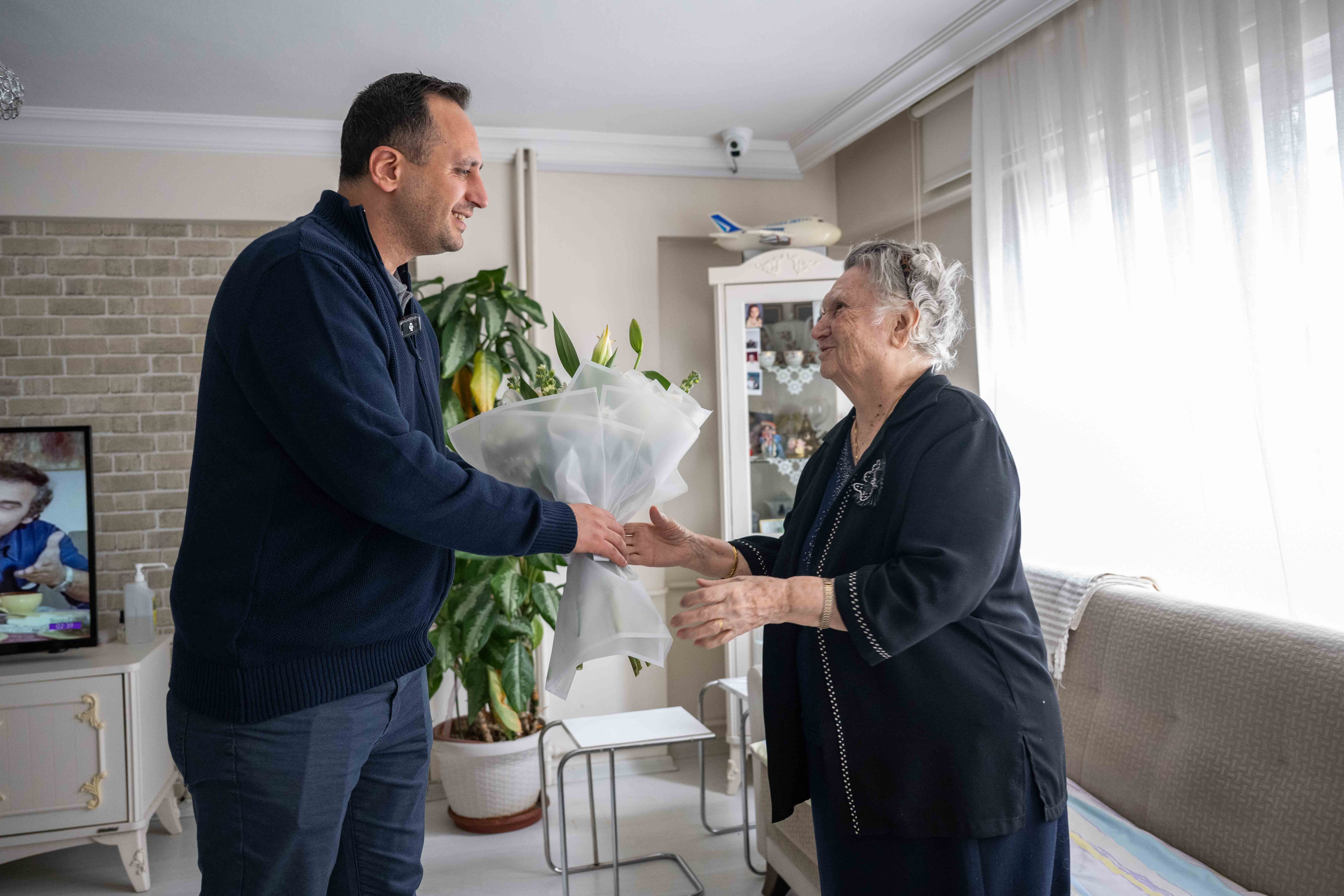 Bornova Belediye Başkanı Ömer Eşki, 14 Şubat Sevgililer Günü’nde Bornova Belediyesi Engelli ve Yaşlı Hizmetleri Müdürlüğü bünyesinde Evde Bakım Hizmeti alan vatandaşları evlerinde ziyaret ederek anlamlı bir buluşmaya imza attı. Başkan Eşki, Gülera Yeniel ile Cavit Baycan ve eşi Nazile Baycan’ı ilgili bürokratlar ve hizmet veren personelle birlikte evlerinde ziyaret etti.