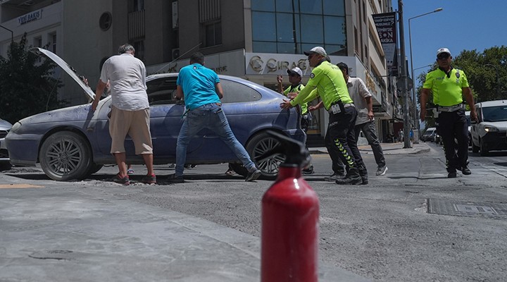 Aracın motor bölümünde çıkan yangın, çevredekiler ve polisin müdahalesiyle söndürüldü.