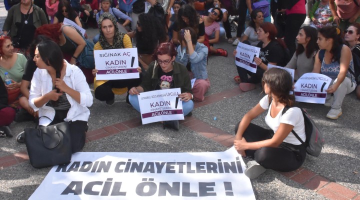 Karşıyaka İZBAN İstasyonu önünde bir araya gelen kadınlar, 'Kadın cinayetlerini acil önle' sloganıyla ve dövizlerle eylem yaptı. Grup, ıslık ve zılgıtlar eşliğinde kadın cinayetlerine karşı ses çıkardı. Geçen hafta İzmir'de mahkemede kendisinden boşanmak isteyen kadının kocasının tahliye edilmesine ve hakimin "Kocan seni öldürmek istediyse bıçak neden derine girmedi?" sorusuna isyan ettiklerini söyleyen kadınlar, İstanbul Sözleşmesi'nin uygulanmasını ve daha çok kadın sığınma evlerinin açılmasını istedi.