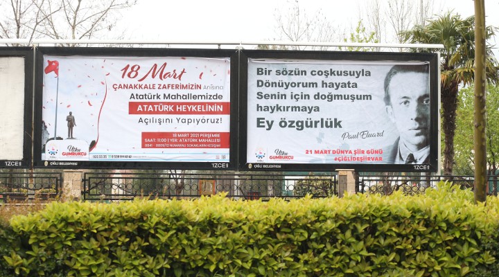 Pandemi şartlarının toplum üzerindeki etkileriyle ilk günden itibaren kararlılıkla mücadele eden Çiğli Belediyesi, son olarak 21 Mart Dünya Şiir Günü dolayısıyla ilçedeki billboardlarda yerli ve yabancı şairlerin şiirlerine yer verdi. Kültür ve Sosyal İşler Müdürlüğünce, halkın sanattan uzak kalmaması ve psikolojik olarak güçlü olması adına sürdürülen çalışmalar kapsamında Nazım Hikmet Ran, Orhan Veli Kanık, Ahmed Arif, Atilla İlhan ve Paul Eluard'ın şiirleri billboardlar aracılığıyla vatandaşlarla paylaşıldı.