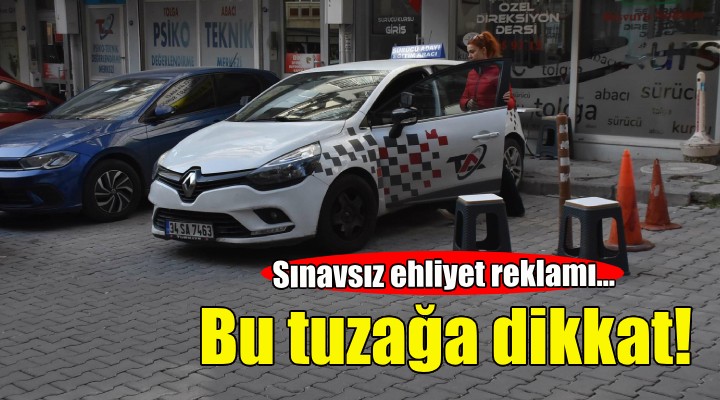 Son yıllarda sınavsız ehliyet vaat eden dolandırıcıların arttığını belirten İzmir Sürücü Kursları ve Eğitimcileri Derneği Başkanı Tolga Abacı, ehliyet sahibi olmak için sürücü kursuna gelip, bizzat kayıt yaptırmak gerektiğini hatırlattı. Özellikle sosyal medyada sınavsız ehliyet reklamlarının sık sık yer aldığını anlatan Abacı, "İnsanlar sınava girmeden sürücü belgesi almak için çeşitli yollara başvuruyor. Bunu da bazı dolandırıcılar menfaat olarak kullanıyor. Vatandaşların başvurduğu bu yolun karşılığı yok. Bir sürücü kursu olmadan ehliyet almak imkansızdır. Çok fazla mağdur var. Sınavsız ehliyet olmaz. Bunun için mutlaka vatandaşların sürücü kurslarına kayıt yaptırıp, belgelerini almaları gerekiyor. Geçtiğimiz ay 5 bin lira ödeyip, bir daha haber alamadığını söyleyen bir vatandaşımız oldu. Bu dolandırıcılar her ilde şubesi olduğunu söylüyor, 'Bilgilerinizi gönderin, sizi o ilde bir kursa yazdıralım' diyorlar. Ama öyle bir kurs kaydı yok. Vatandaş, 5 bin lirasını peşin ödüyor ama sonra bir daha ulaşamıyor. 'Sizin yerinize başkası sınava girecek, ehliyetinizi size kargoyla göndereceğiz' diyorlar. Ama bir daha muhatap bulamıyorlar" dedi.