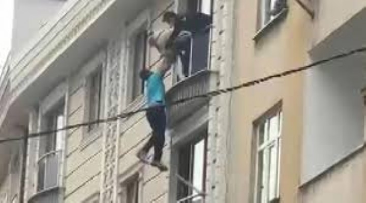 İstanbul'da bir kişi ailesiyle tartıştıktan sonra intihar etmek istedi. Pencereden aşağıya sarkan kişiyi biri polis 3 kişi tutup yukarı çekerek kurtardı. Yaşananlar cep telefonu kamerasıyla görüntüler.