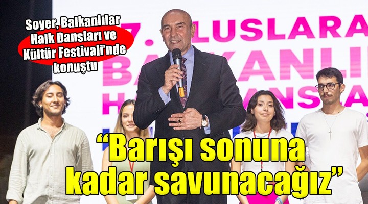 Törende konuşan İzmir Büyükşehir Belediye Başkanı Tunç Soyer, Ata’mızdan miras bu festivali geliştirmek ve daha fazlasını yapmak için her yıl ayrı bir heyecan yaşadıklarını belirterek, “Ata’mızın bu festivali başlatmasının sebebi barışı bu topraklarda kalıcı kılmak. Gençlerimizin, halkımızın kuracağı iletişim köprüleri, kardeşlik bağlarıyla barışı güçlendirmek, barış için daha fazlasını yapabilmek. Bu felsefeyle devam edeceğiz, barış için mücadele etmeye devam edeceğiz. Barışı sonuna kadar savunacağız. Ata’mızın dediği gibi, ‘Yurtta sulh, cihanda sulh’ için asla vazgeçmeyeceğiz” dedi.
