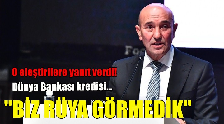 ''Biz rüya görmedik. 4 ay boyunca Hazine ve Maliye Bakanlığı ile İller Bankası uzmanları ile müzakereler yürütüldü. 5 Mayıs'ta bakanlığın Dünya Bankası'ndan bir heyetin değerlendirmede bulunacağına dair tarafımıza gönderilmiş yazısı da mevcut. Geçen hafta da konu ile ilgili bir görüşme gerçekleşti. Bu çalışmanın başka illere de örnek olduğu ve genişletileceği şeklinde bilgiler de var. Diliyorum ki genişletilecek. İzmir için yapılmış olan bu çalışmanın İzmir'in haklarının teslim edileceği şekilde gelişeceğini umuyorum. ''