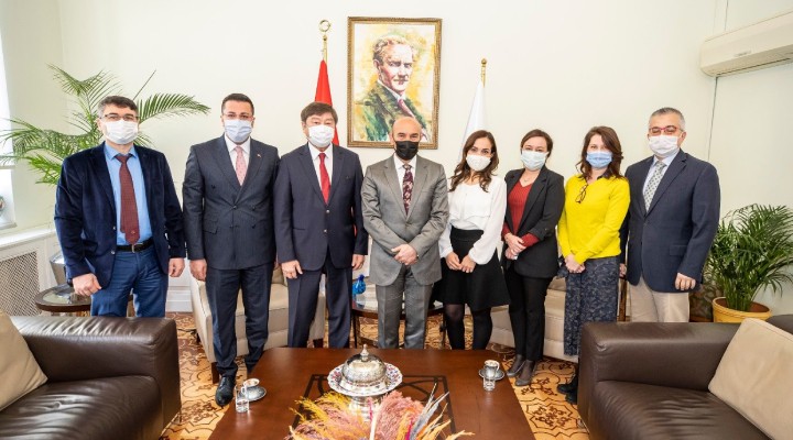 Uluslararası Türk Kültürü Teşkilatı (TÜRKSOY) Genel Sekreteri Düsen Kaseinov, İzmir Büyükşehir Belediye Başkanı Tunç Soyer’i makamında ziyaret etti. İkili ilişkilerin geliştirilmesi amacıyla görüş alışverişinde bulunulan ziyarette İzmir Büyükşehir Belediye Başkanı Tunç Soyer, “Bütün bu krizler gösterdi ki; dayanışma insanların birbiriyle daha çok destek verecek şekilde bir araya gelmesi, krizlerin hastalıkların tedavisini de kolaylaştırıyor, hasarı azaltıyor. Dayanışmayı gerçekleştirecek ortak paydalar bulmak lazım. Kültür, sanat en güçlü ortaklardan. Onun üzerinden yol almak çok kıymetli” dedi.